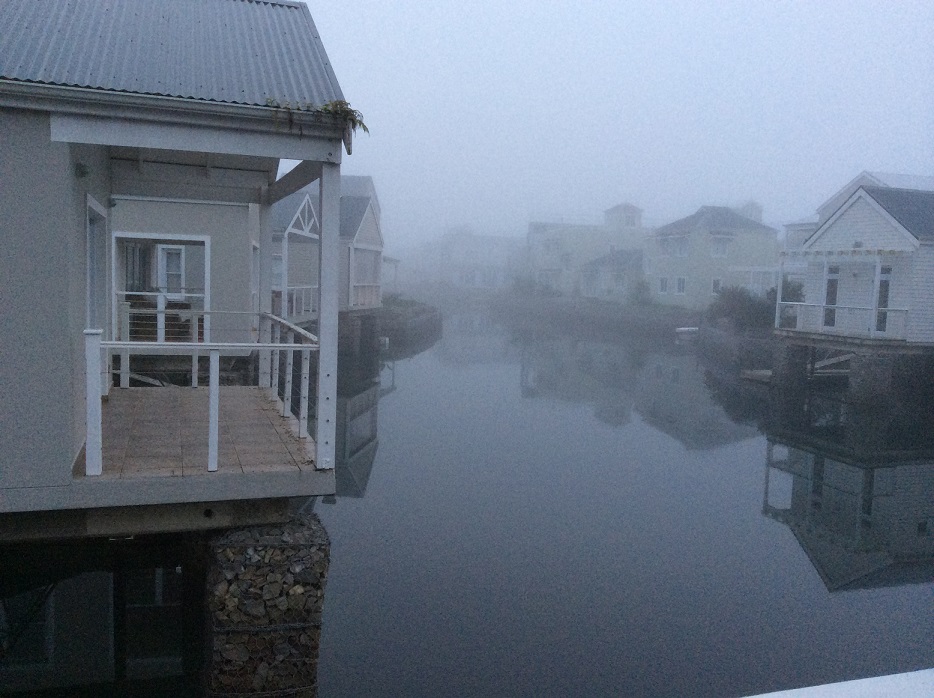 Saturday 2 Aug: Waiting for everyone else to surface, I’m watching the part of the lagoon that goes past our house emerge from night into day through the dawn mist.